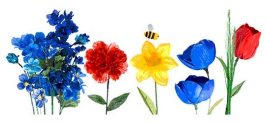 To celebrate spring, Google’s Doodle uses an artsy little bumblebee disturbing some pretty flowers. As a beekeeper I am always happy to see bee thingies, but I wish that such artists would consider a wee dab of natural science in their creations. It is a common myth that bees like garden flowers. Usually they do not.