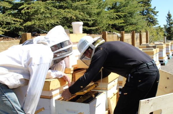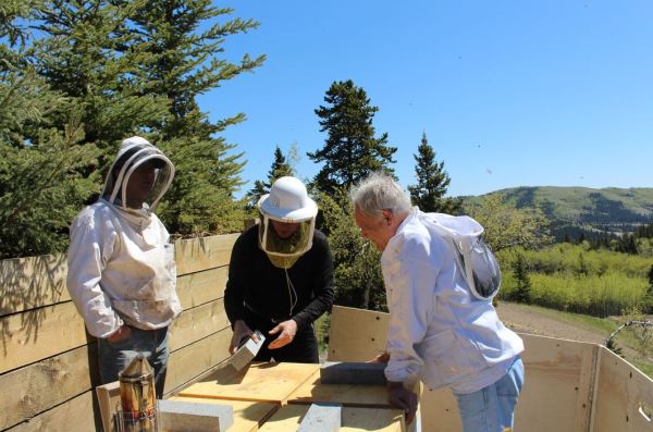 A month ago, friends invited me to see some bees at a ranch up in the foothills of the Canadian Rockies. Beekeeper Stephen, a fellow geophysicist, guided us as we meandered the secondary roads west of Calgary. We gradually gained a bit of elevation (from 1,100 metres at my home to nearly 1,500 metres at the ranch). I was curious to see how bees might survive in that largely forested locale – remote from large fields of alfalfa and canola, and in an area where grizzly bears roam and frost and snow are possible intruders even during the summer months. The bees I saw were not merely surviving, they were thriving.