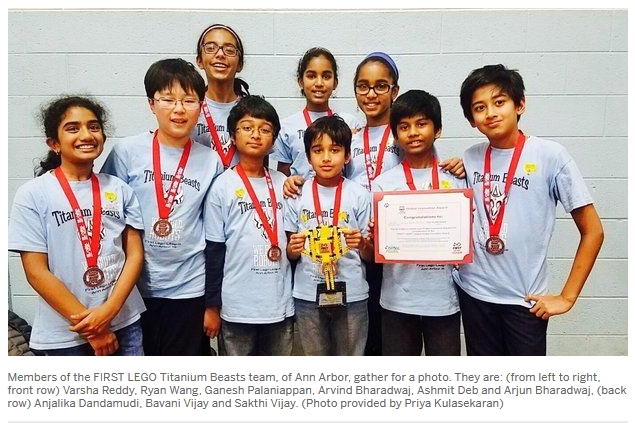 Winning their local competition, the Ann Arbor middle school students team is among just 20 groups chosen from around the world who have earned a trip to Washington, D.C., next month to compete for the FIRST LEGO League “Global Innovation Award”.
