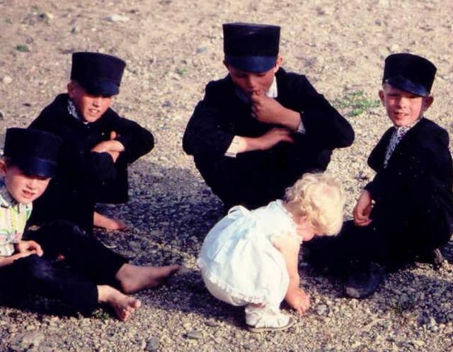 Hutterite kids, hanging out with my daughter. Not every moment is spent working.