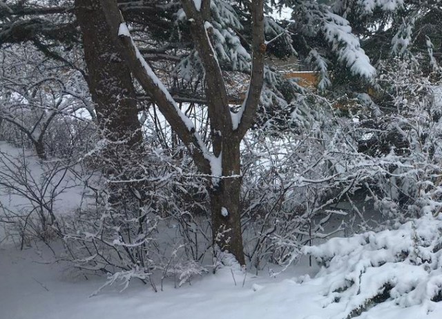 Besides the snow, which is pretty-much year-round here in Calgary, this is actually an OK bee site. The snow was a half-metre deep last weekend, but it’s melting. This spot slopes slightly southward, gets a bit of morning sun, is hidden from neighbours in our mini-forest, and best of all, it’s fairly accessible, just a hop and skip from our dog run and deck. But no bee spot is ever perfect and we have to constantly compromise. The bottom line, if there is one, is that you’ve got to work with what you’ve got – and that’s not always perfect.