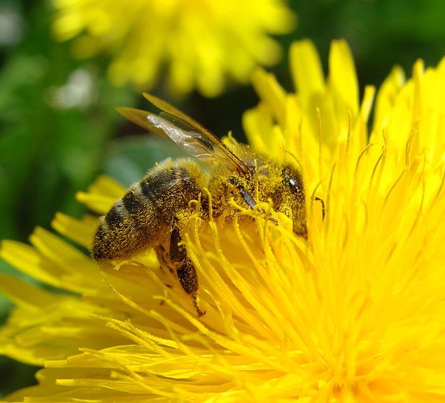 Pollen-dusted bee on dandelion (credit: Guérin Nicolas)