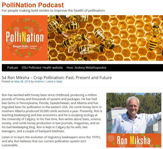 Dr Andony Melathopoulos, the bee scientist running The PolliNation Podcast, invited me to discuss honey bee pollination – past, present, future. Andony is a very knowledgeable beekeeper and a scientist at Oregon State where he works in pollination extension, research, and education. Because of his experiences, he deftly leads this discussion about (1) the old days of pollination (before hives on pallets, bee nets, and freeways), (2) the current state of commercial pollination (which I dub ‘unsustainable’), and (3) a possible future where drone bees will be robots and cherished crops might be ‘self-fruitful’ and no longer need our bees.