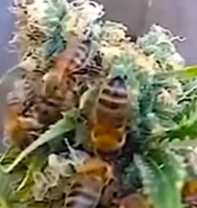 Bees can’t make honey from weed. Weeds, perhaps. Weed, no. However, there has been a weed and honey operation of a sort going for a while in France. The operator’s claim is that he has ‘trained’ his bees to collect ‘resin’ from cannabis which the bees ‘add’ to the honey they make. I don’t want to sound skeptical, but I doubt it.  You can read about Nicolas Trainerbees and his trained bees here and here. Training bees to collect marijuana resin would be akin to training bees to collect propolis. I don’t think it’s possible. However, here’s a video of his ‘trained’ bees. What do you think?