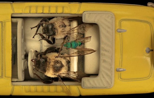 Scientists capitalized on recent revelations that bees are a lot smarter than previously thought. In addition to being able to count and solve simple puzzles USGS scientists at the Patuxent Native Bee Lab have taught bees to driver miniaturized automobiles. Using rewards such as flower smoothies and honey laced with addictive pollens, bees were gradually induced to drive in order to continue receiving their rewards. The study came to an unfortunate ending when one of the lab assistants was overwhelmed by angry bees who felt that the researchers were holding back on their pollen loads. Future plans are in the work to use less coercive methods and talks are in progress with several bee advocacy groups. For release on April 1, 2019. Photography by Brooke Goggins.