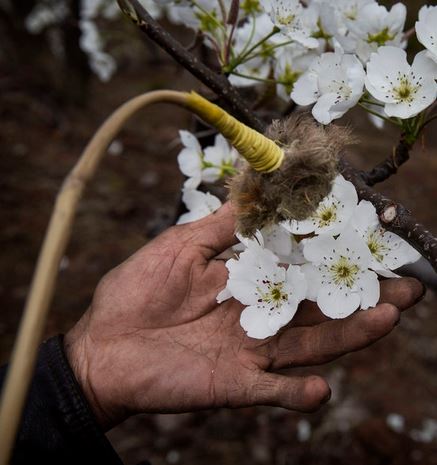 Dusting pollen on pears in China. (Credit: HuffPost)