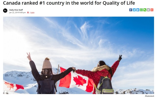 I’m also pleased that my home city, Calgary, has regularly placed first in the world among all cities for ‘environment’ – a quality you don’t think about much unless you travel and see the world’s other options. Environment is measured by the Mercer Group as clean air and water, public parks and greenspaces, and so on. I’ll probably stay.