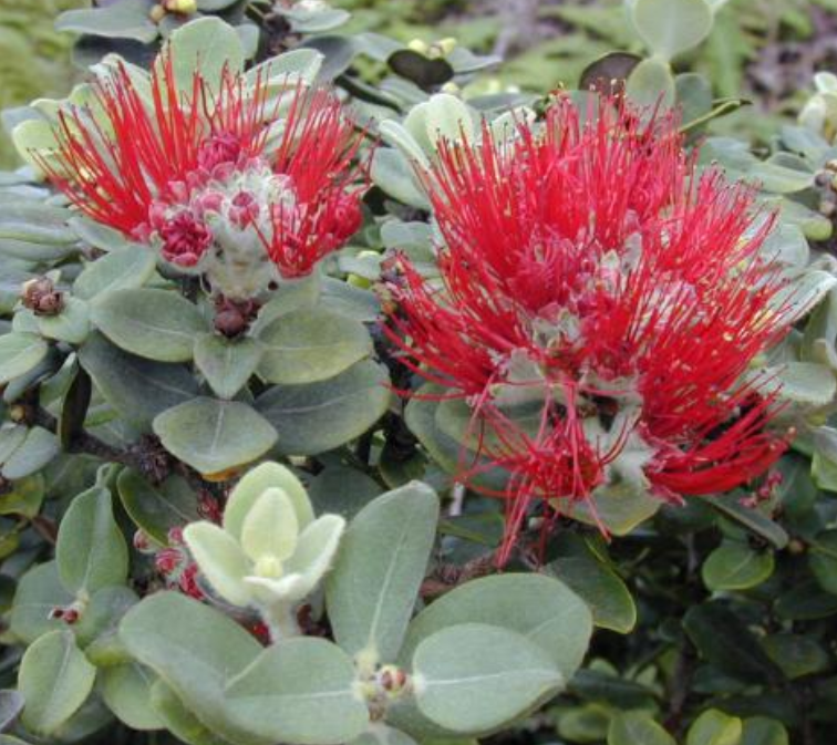 Metrosideros polymorpha, known in Hawaii as ʻŌhiʻa lehua It sometimes fills a heavy super with light honey in January.