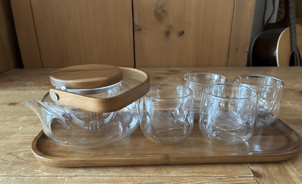 To really enjoy that tea, you need to consider the cup, too. We are excited about the Umi Tea Set, which we discovered a couple of weeks ago. It is double-walled glass, which gets rid of the cup handle, so it becomes simple and clean – without burning your hand when you hold it.