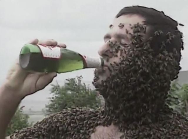 I guess this is funny. A beekeeper drops a hive in a busy park.